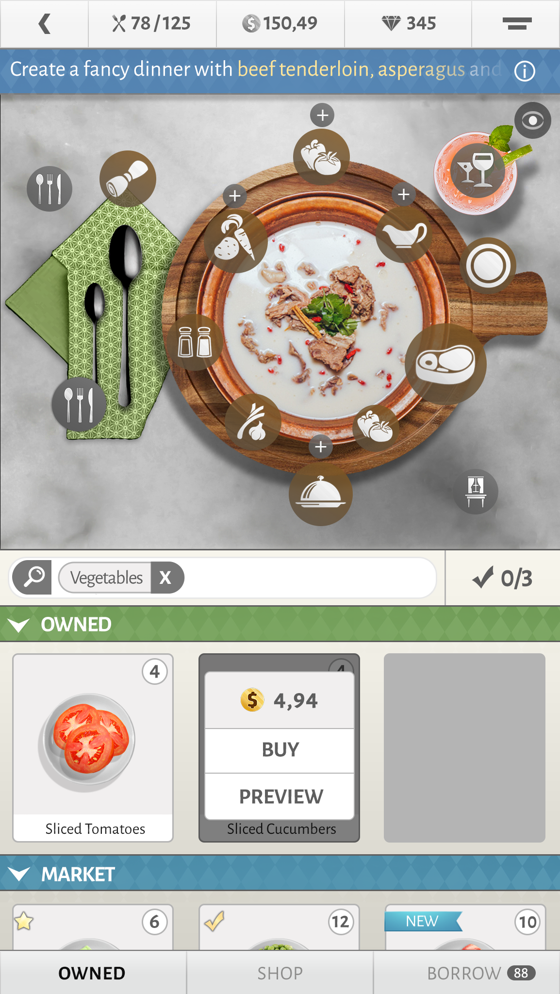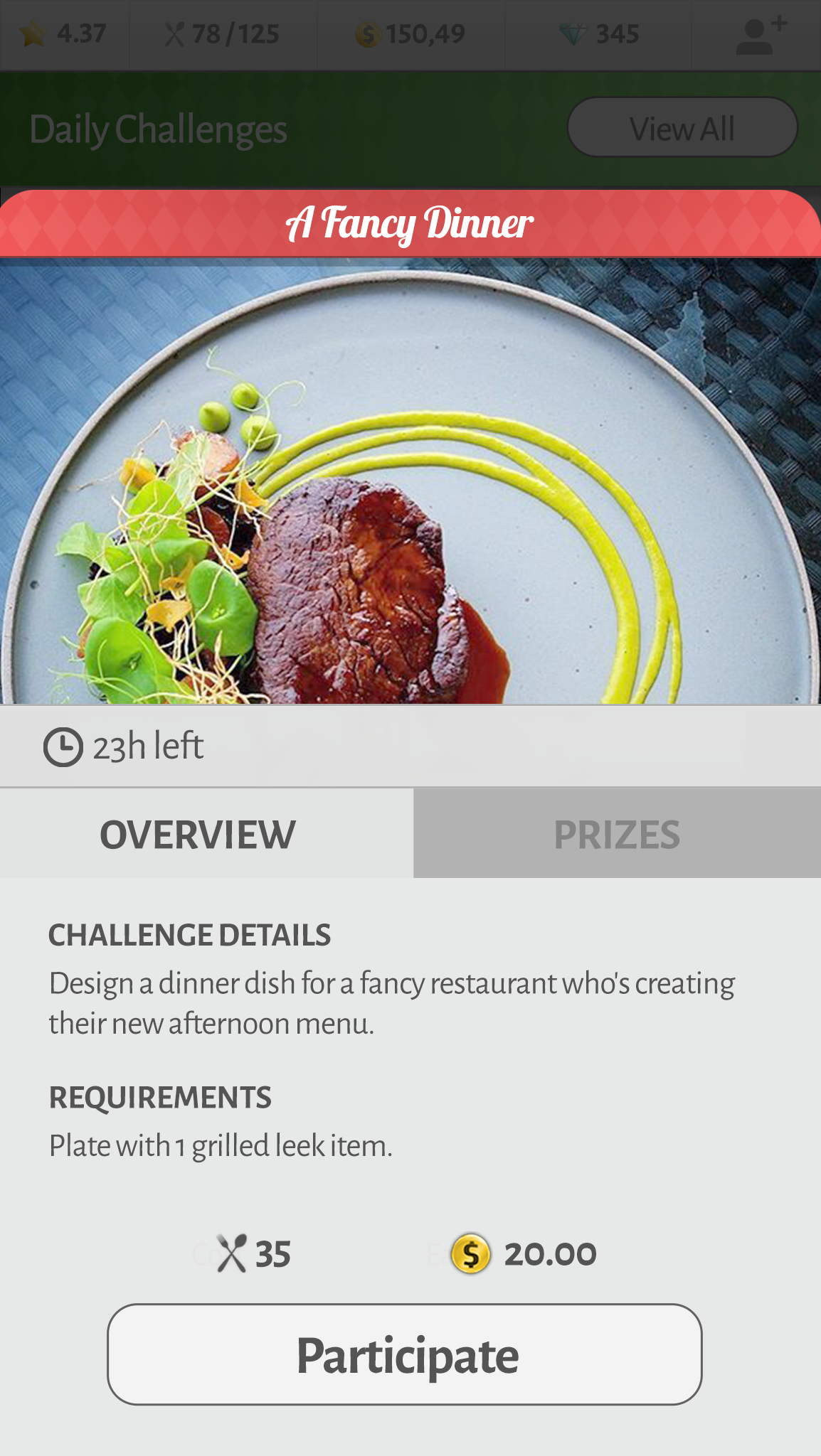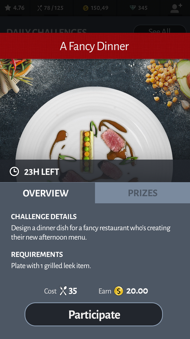 The game, which targeted non-gamers with a polished, app-like UI, featured plating challenges and peer-based voting. It reached a soft launch on Google Play in June 2019 but was cancelled in December 2019.