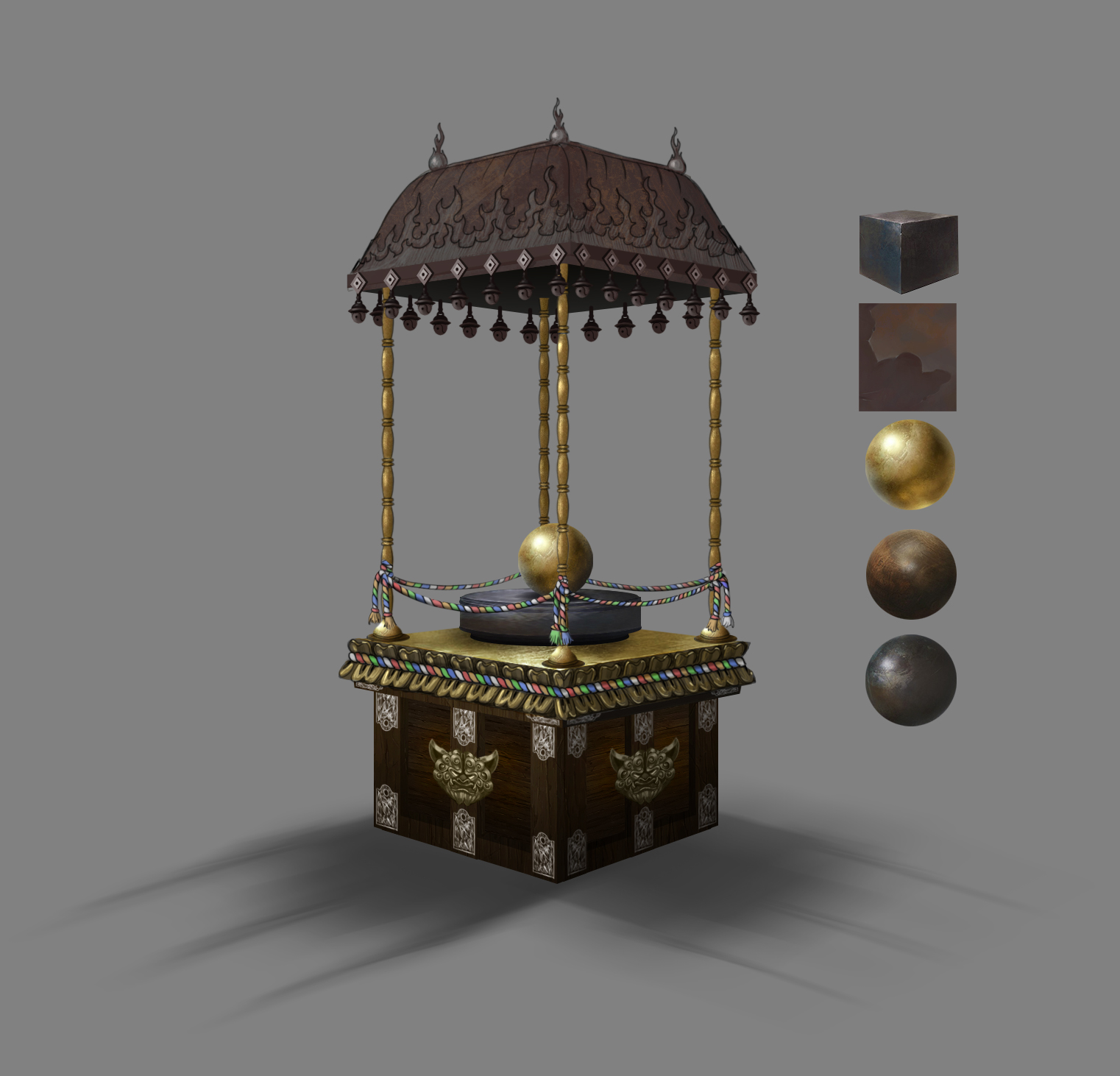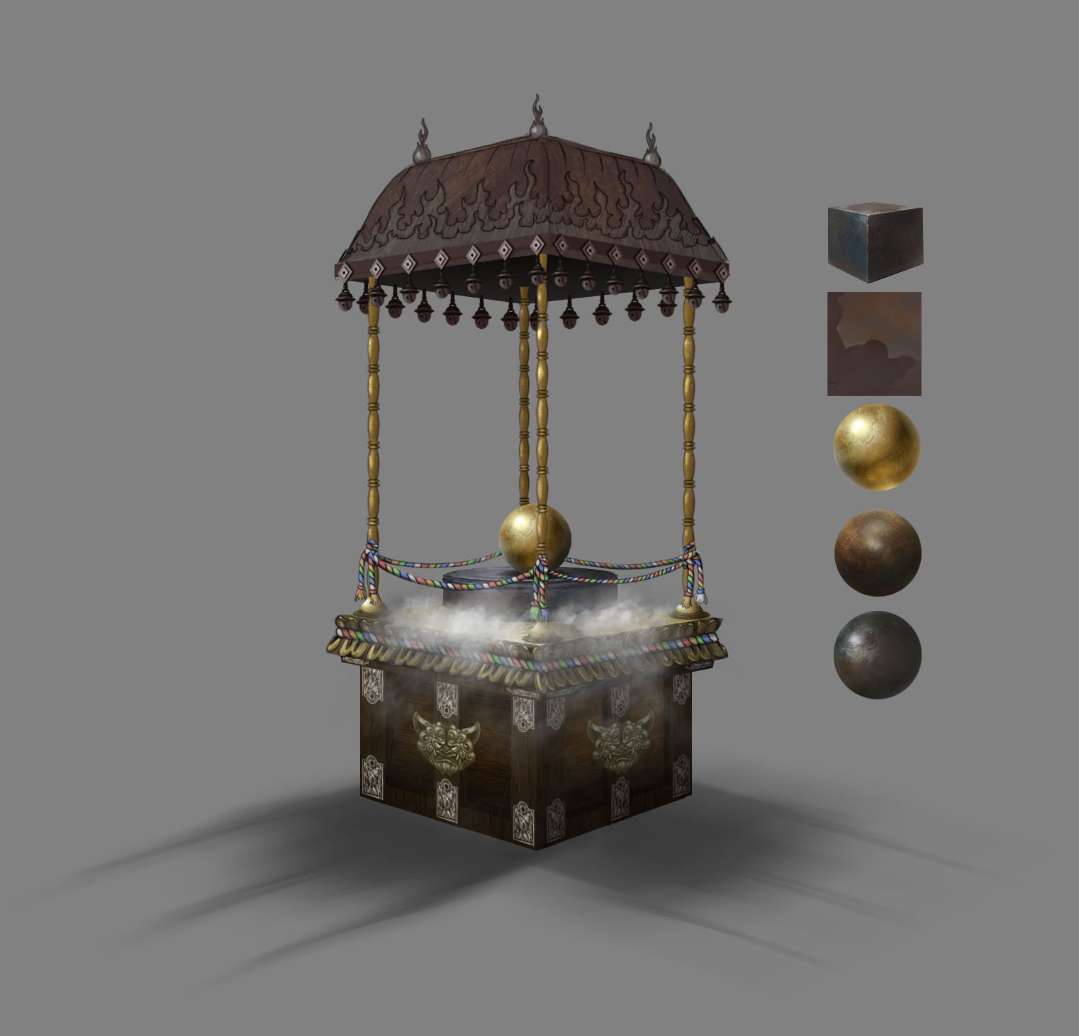 The realisation Simon Tessier brought up to me when I was making the Concepts, Loading Screen and tiles, was that souls of the dead were to become lanterns. Altars were to burn to purify their sins and mold them for reincarnation.