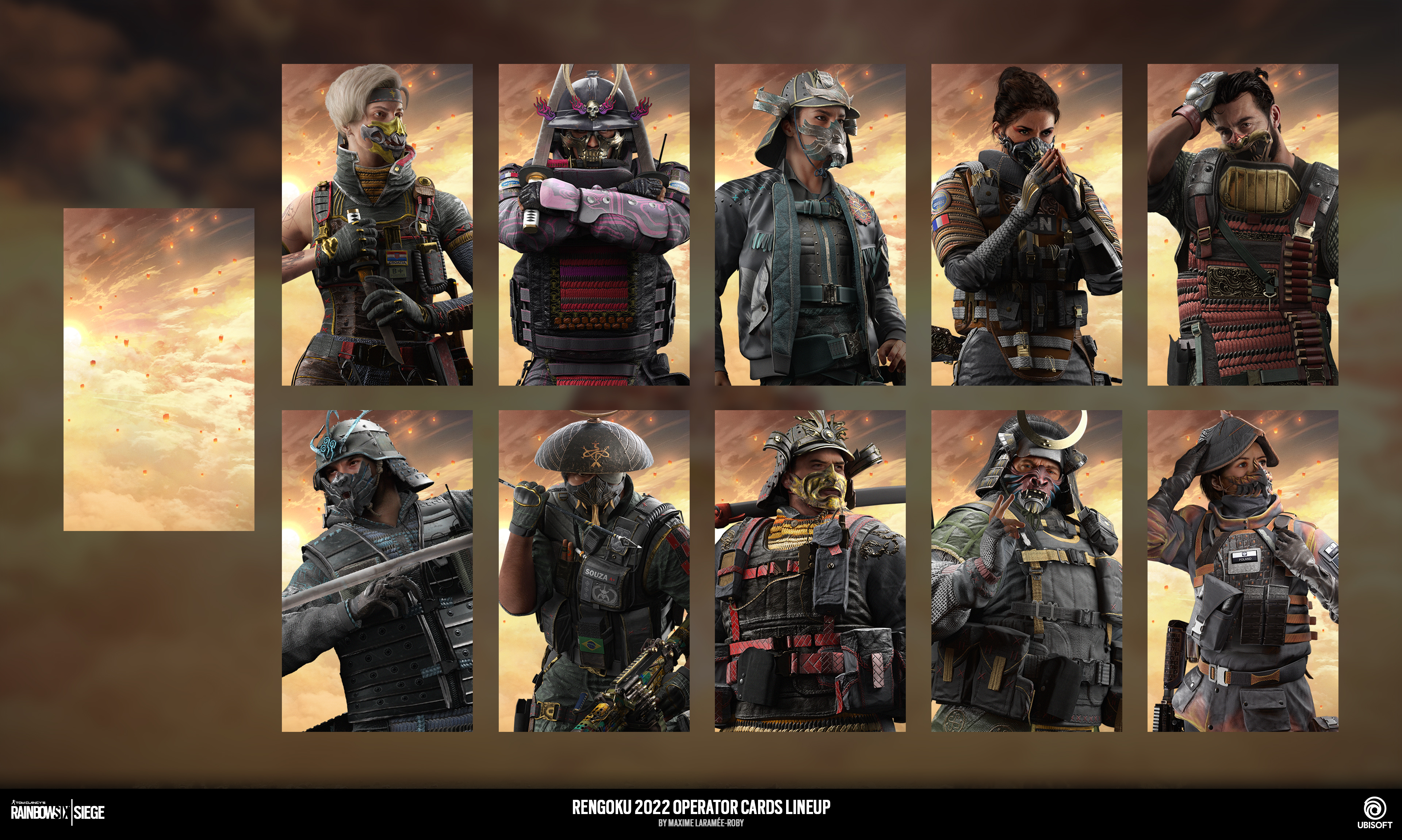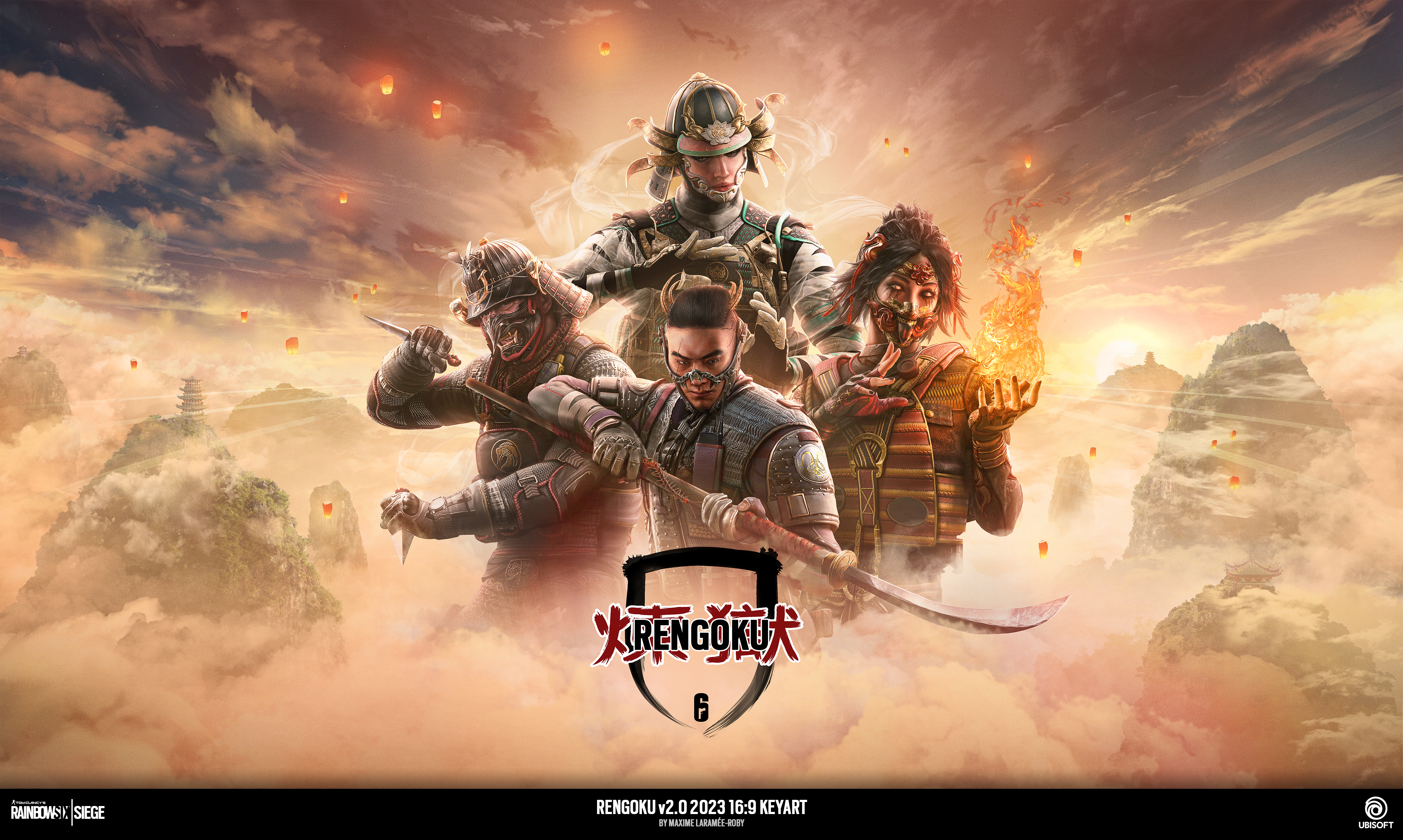 When I made the key art, my goal was to expose the vastness of the sea of clouds and give it a burst of wind coming from the back of the operators. The overall lighting was focused on the glow of the sun, buring the backs of the Operators and give them a god-like scale against the "theater" the map and gamemode will feature them on.