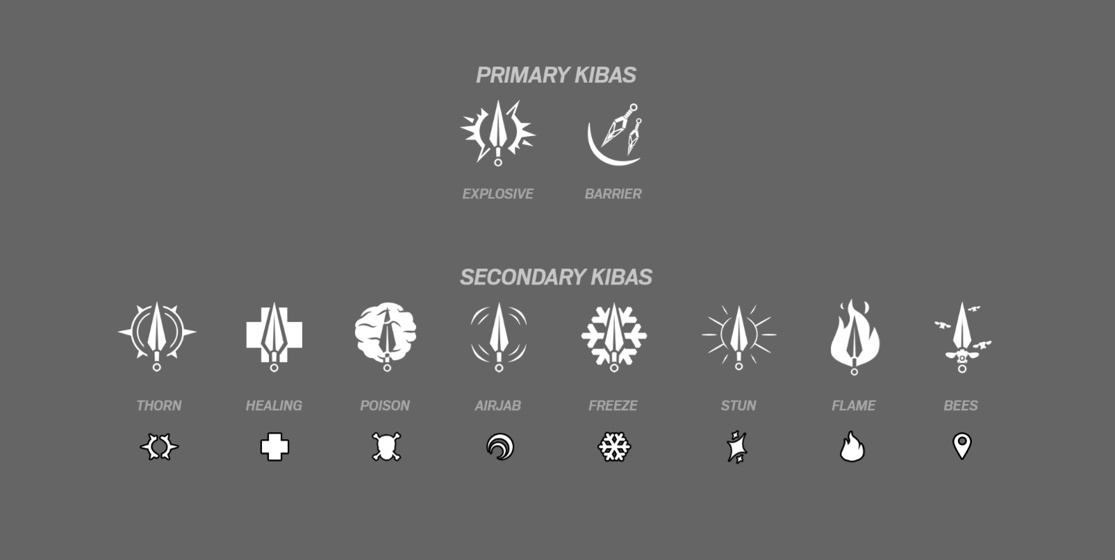 This time we had two seperate effects on two slices of operators: one were using an explosive kibas, while the other the wall kibas. Also their unique secondary kibas needed a visible icon to be able to quickly select what gaemplay you'd wish at a glance.