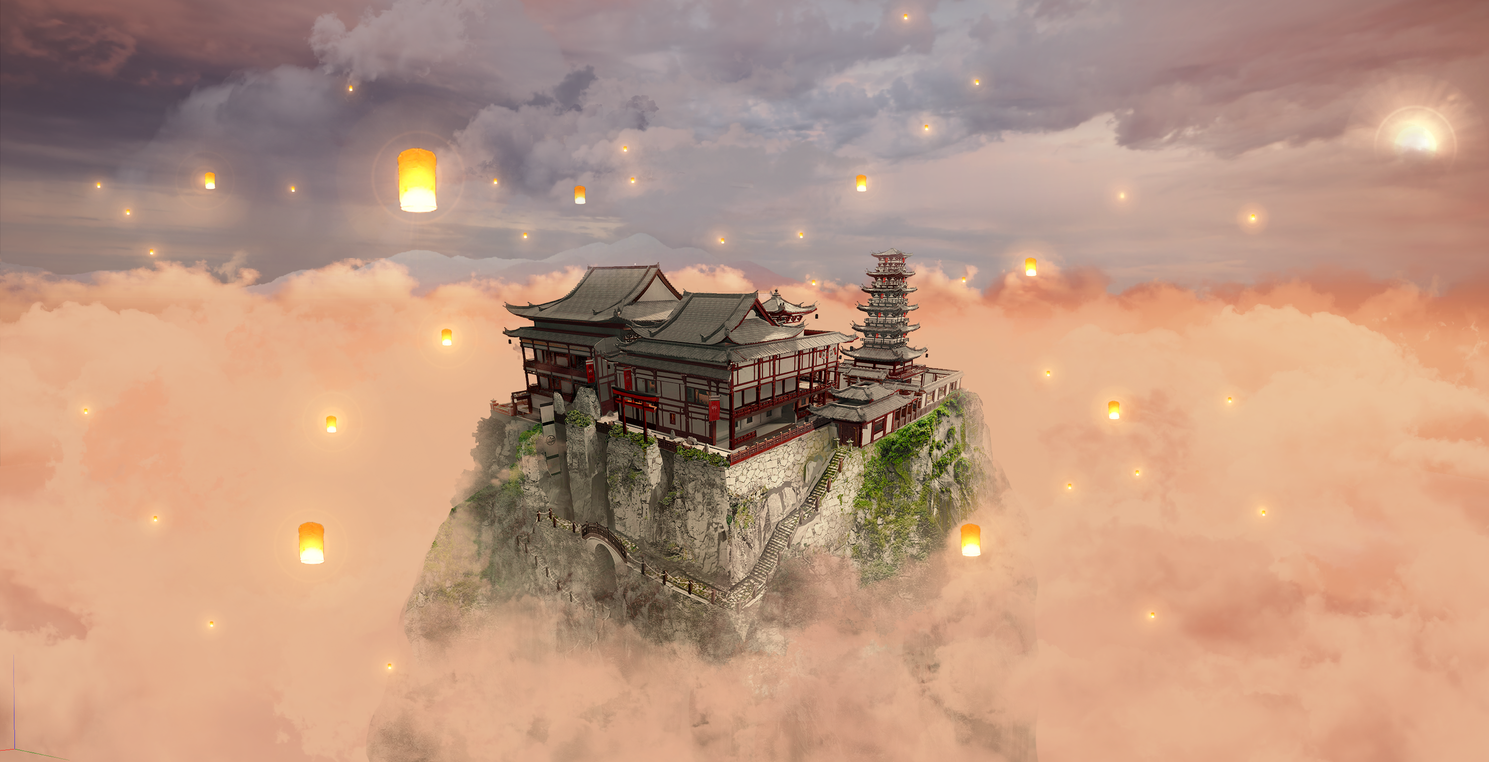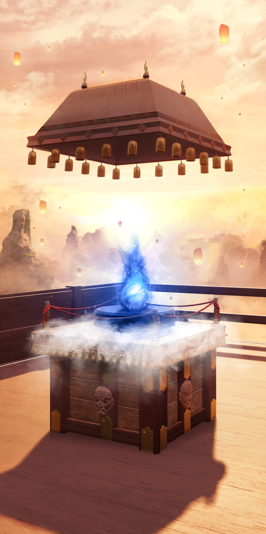 Since we dont focus on the temple anymore in this new composition, I spreaded lanterns around the operators as would souls gather around the condemned.