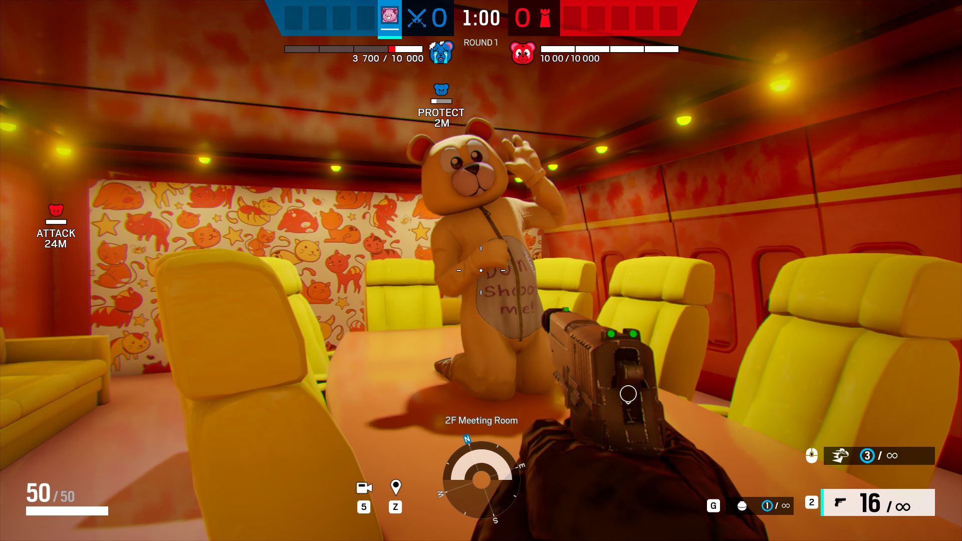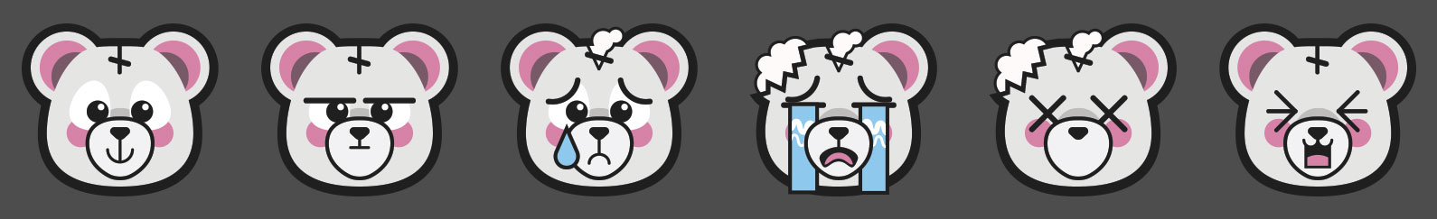 Lastly, the HUD required a very specific Health System to track both teams Teddy's. With the art direction, and a junior: Pascale Blanchette, we made a progressively damaged teddy bear, and icons for each gadgets. All assets were kept white and color coded to ensure full accessibility.