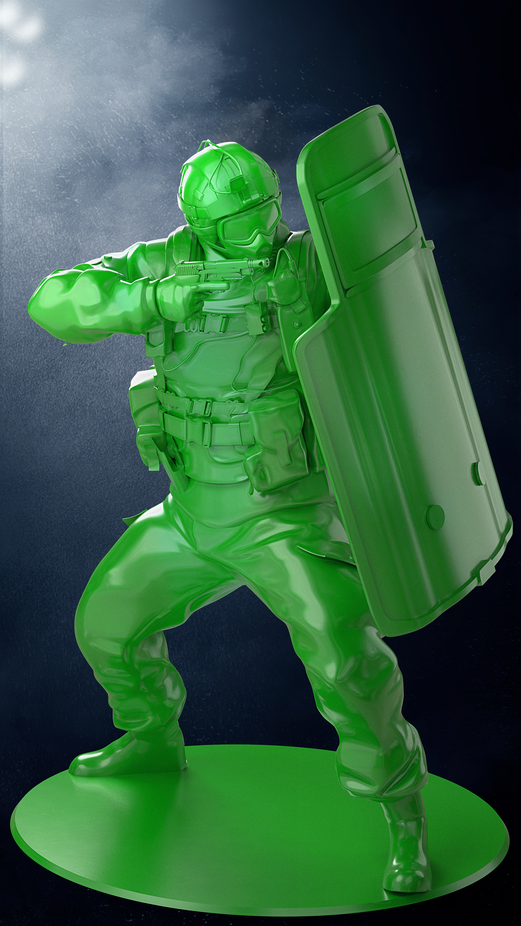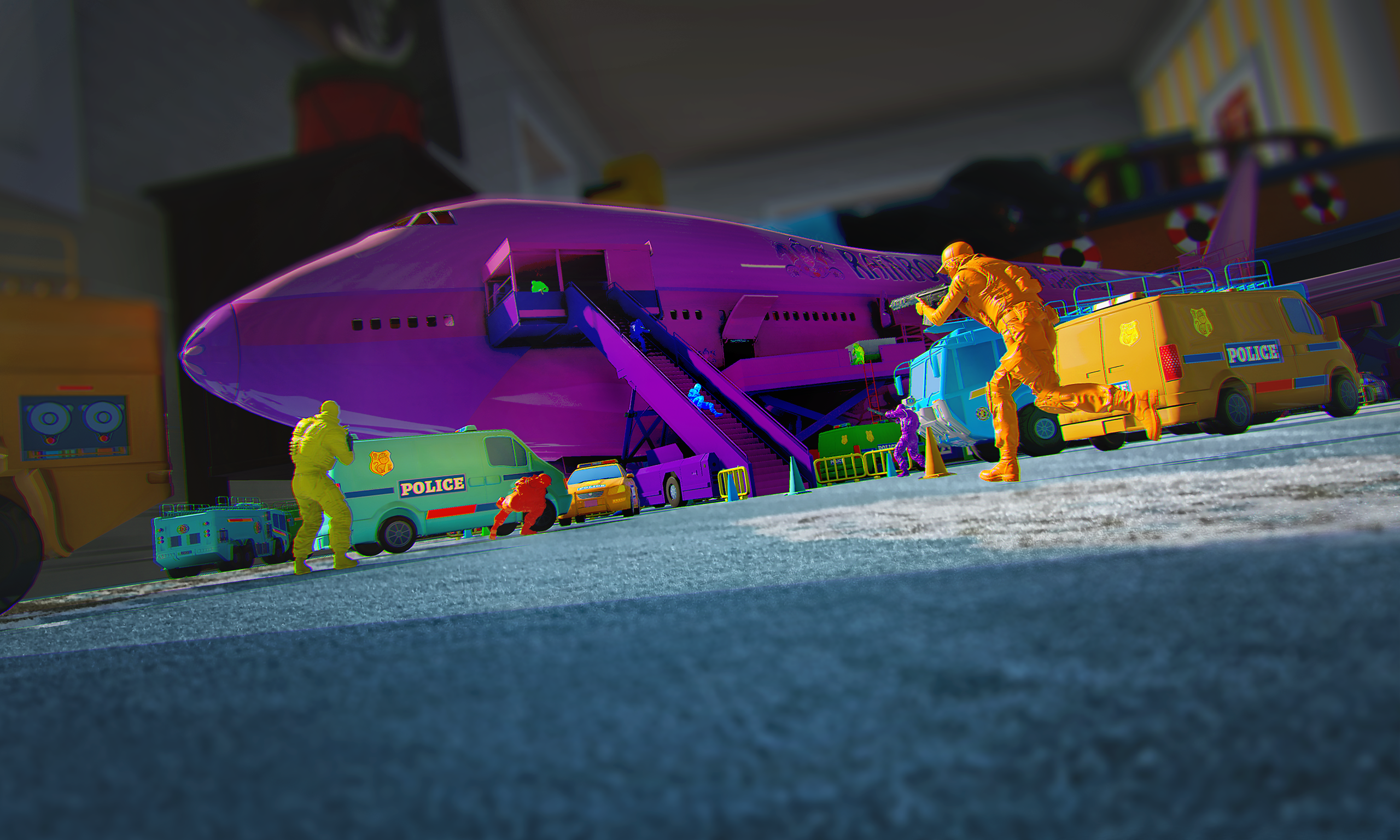 And, exceptionnaly, the Plastic Pals enemies the Fluffy Friends are facing against had no 3D Renders to show them in menus. So, I took on myself to make it look nice and created all of them a custom pose, and custom Plastic Shader to give them the look they deserved.