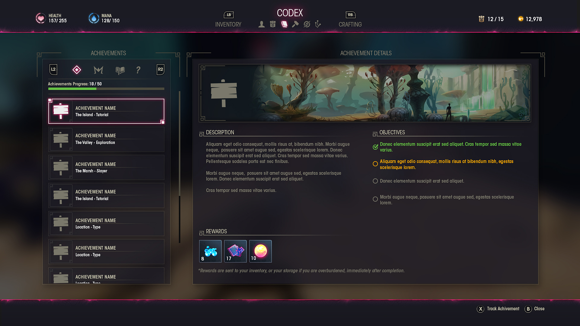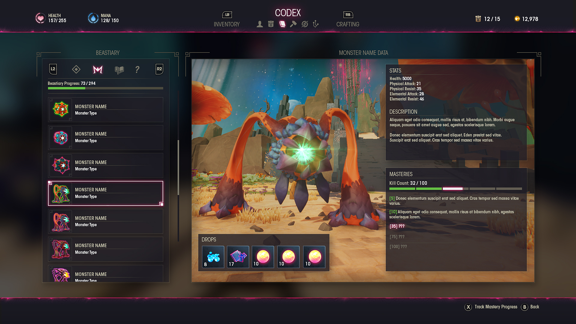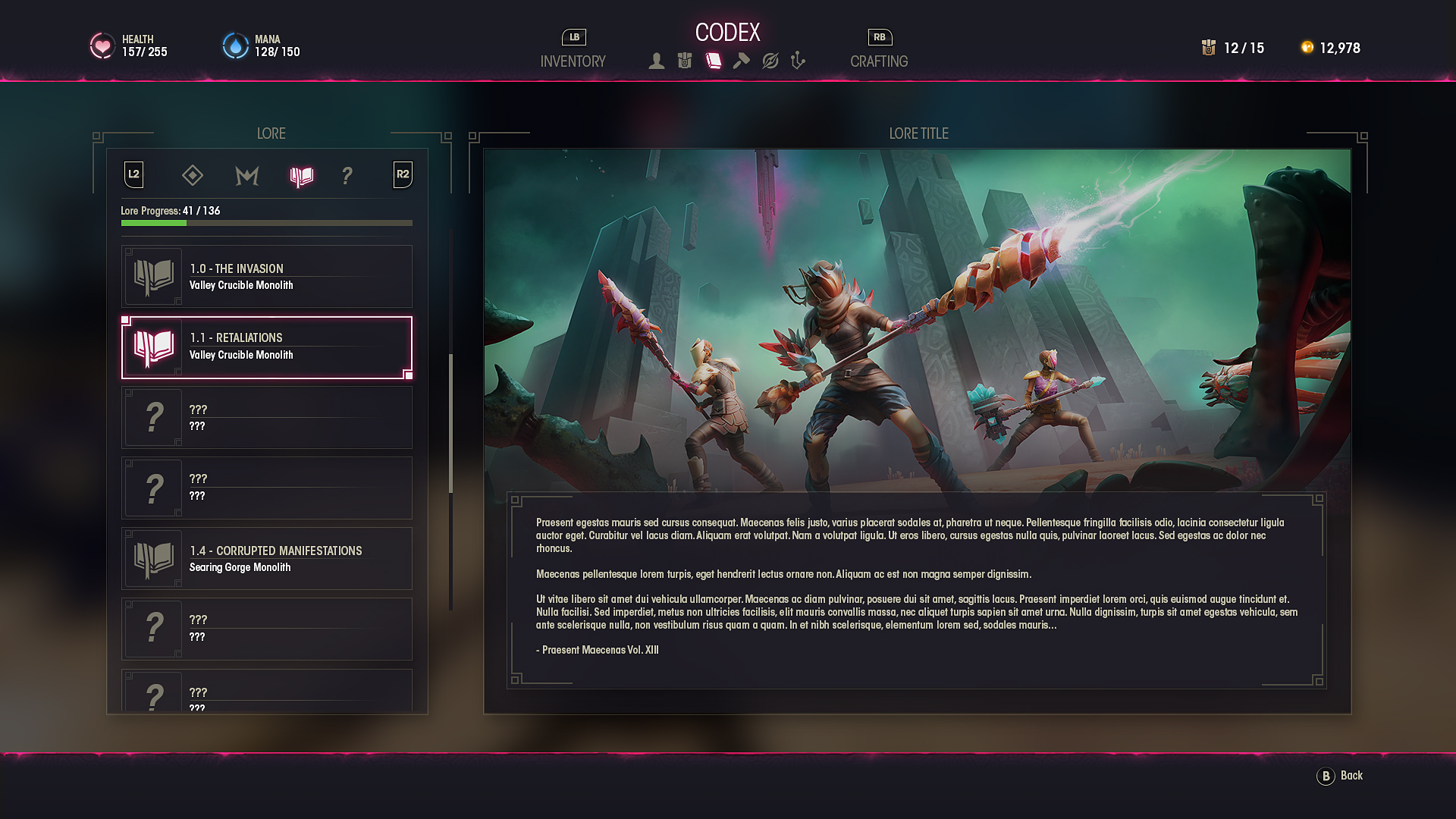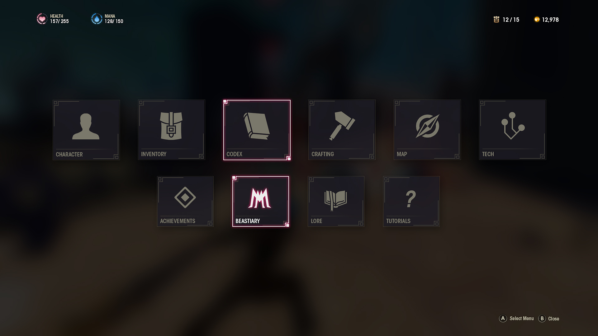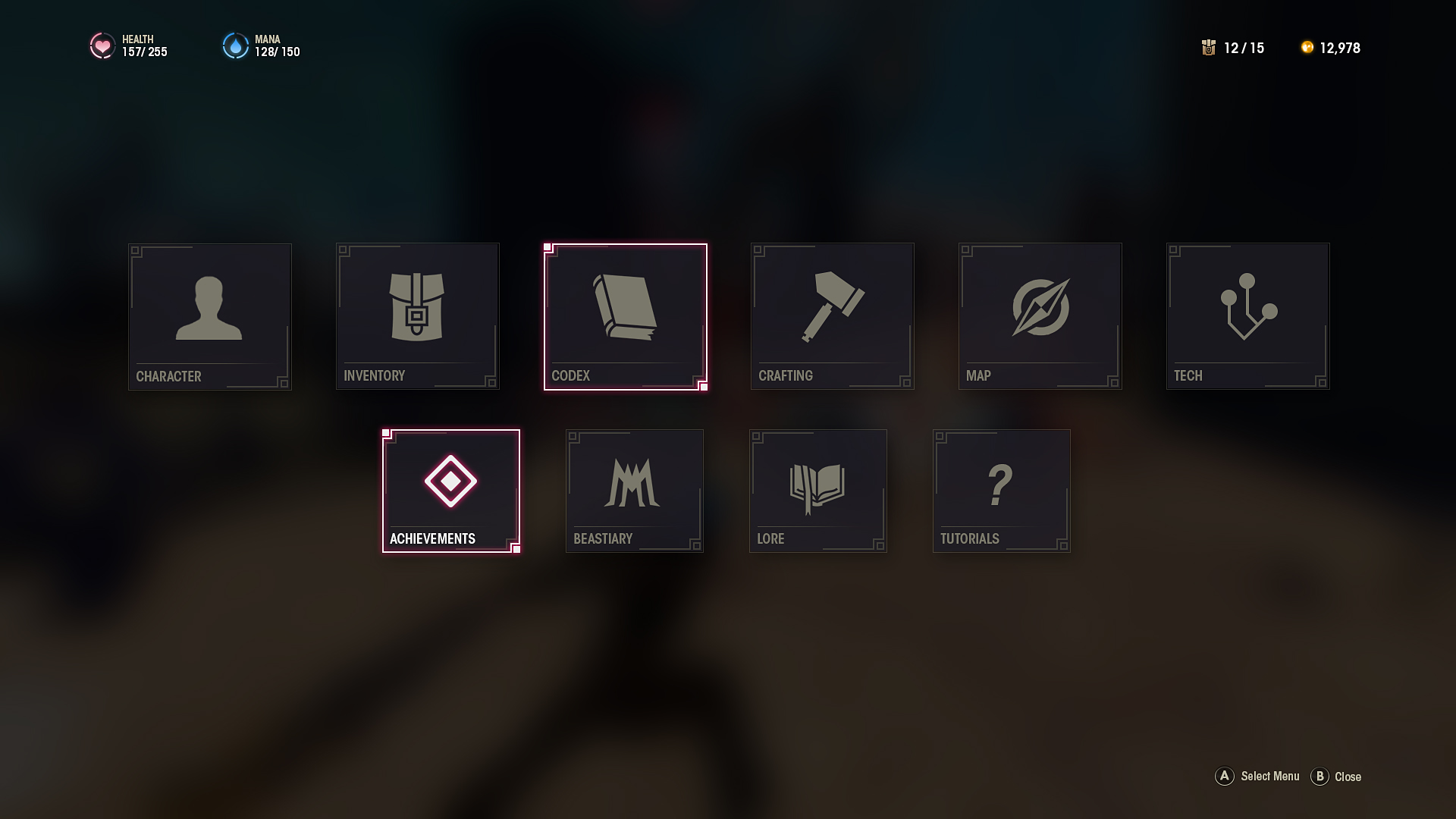 When I redid the menus for the fullscreen versions, I finally added the Codex Menus. Which is for the achievements, beastiary, tutorials and lore sub-menus.
