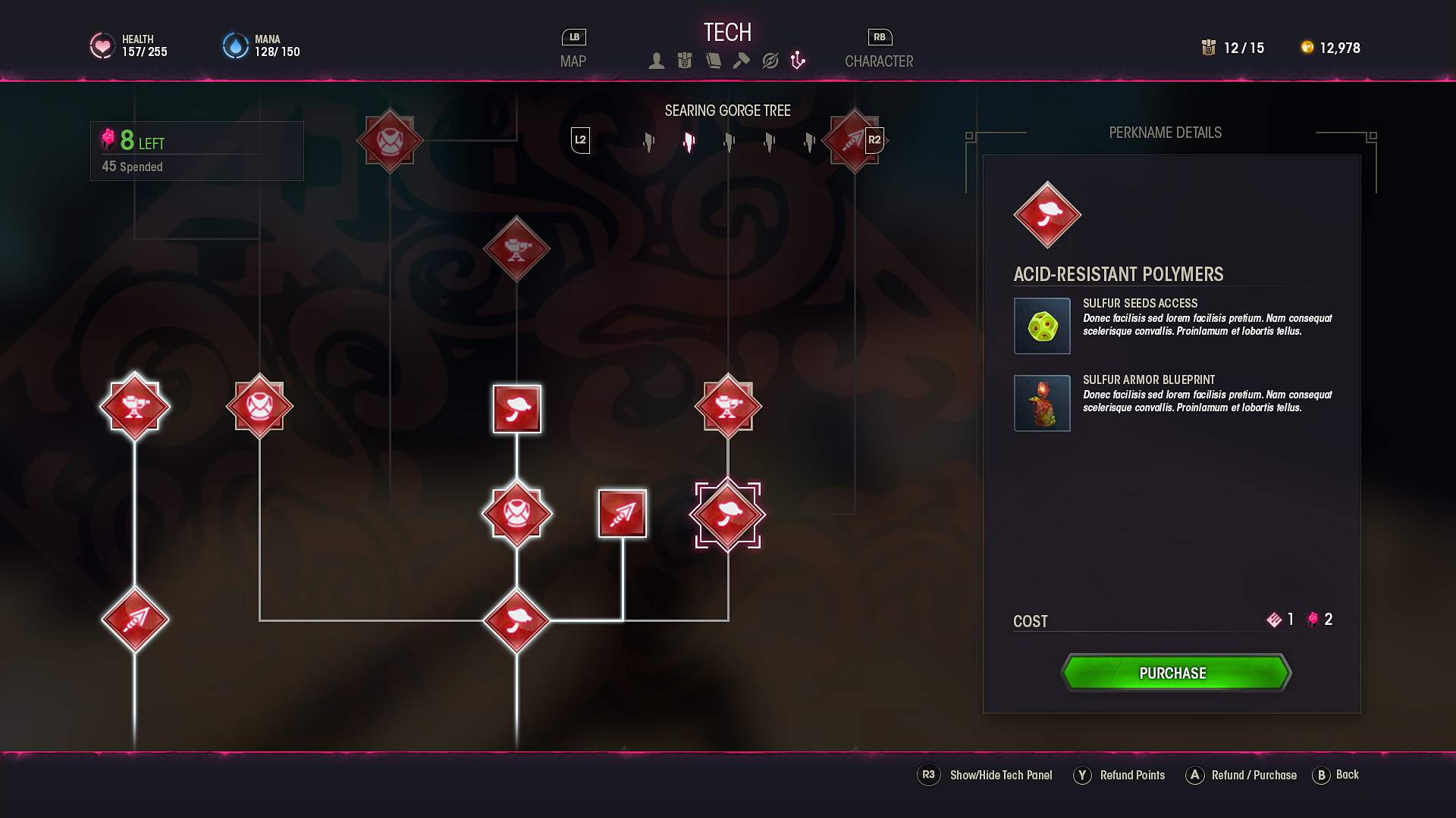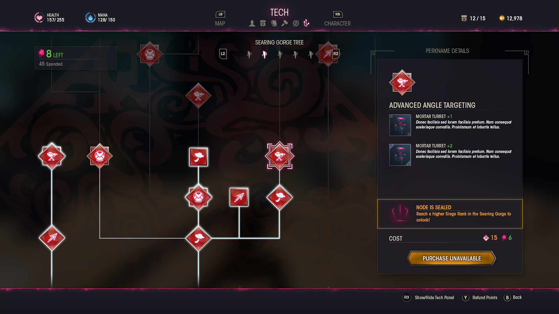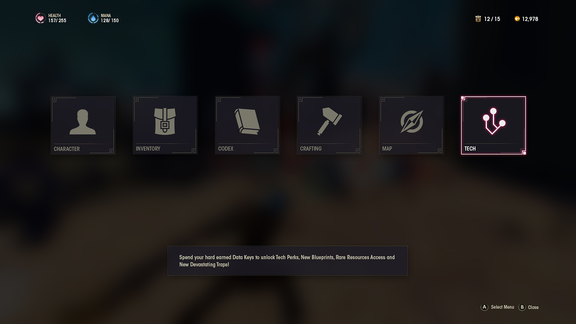 The last part of the main menus was the Tech menu, where it was your personnal upgrades based on your overall biomes progression. This helped players add more turrets, unlock new types of turrets, weapons and upgrades.