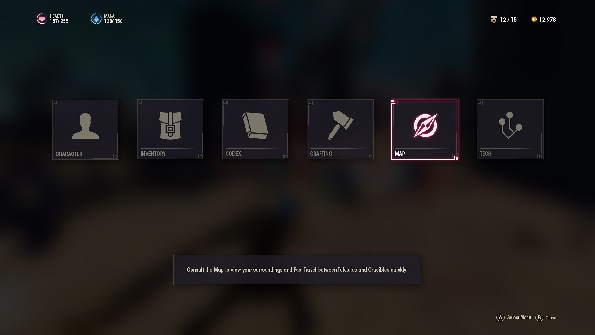 The Game relied heavily on contextual prompts everywhere as well as a central UI pop-up for all menus and interactions.