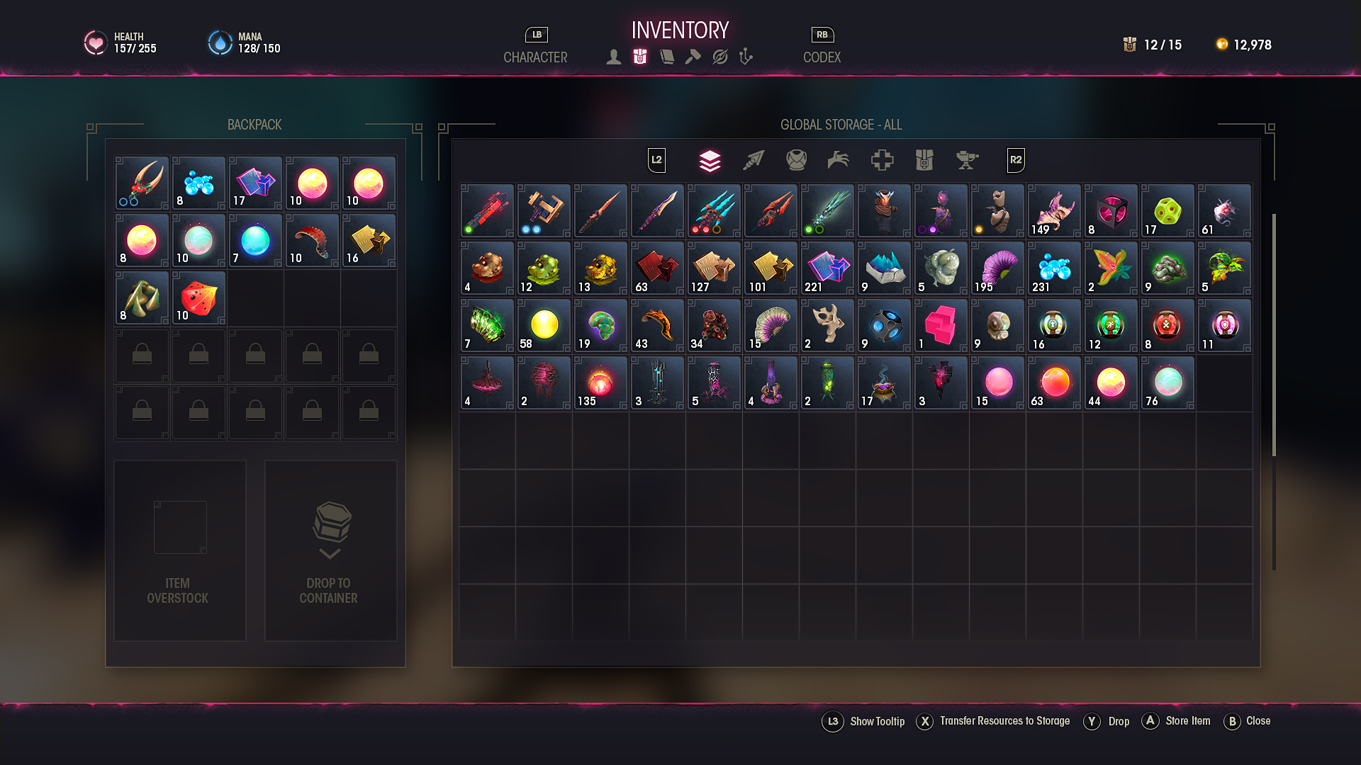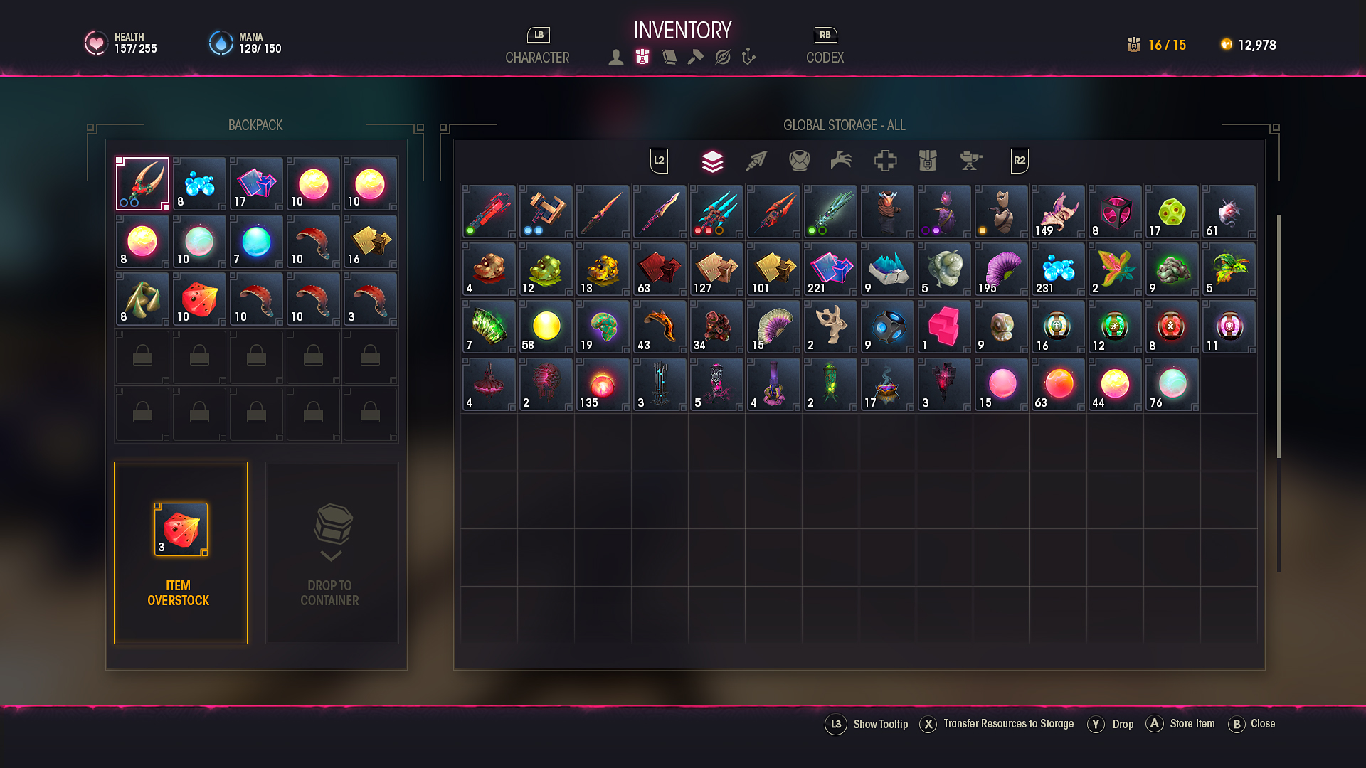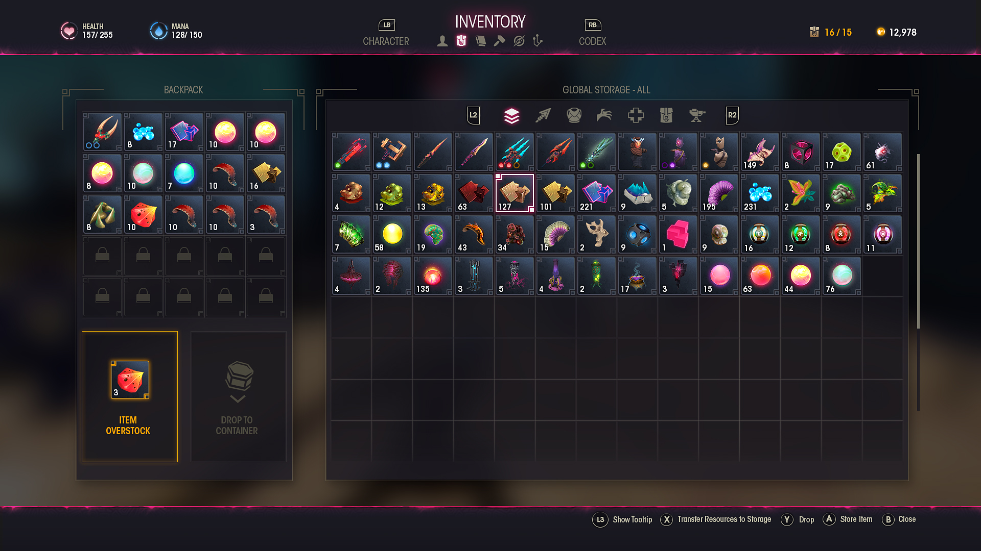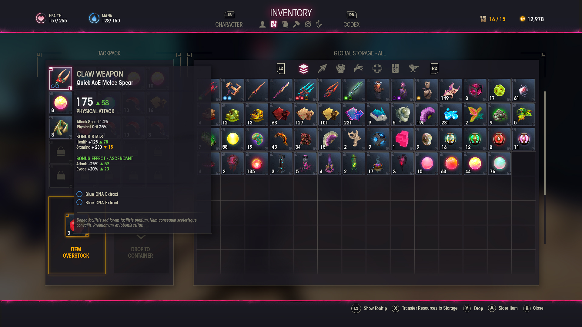So we came up with a twin sided window system to exchange from one to another. Trash items could also be dropped with a button or dragged to and overflow allowed for a single safekeeping in case of overbloat.