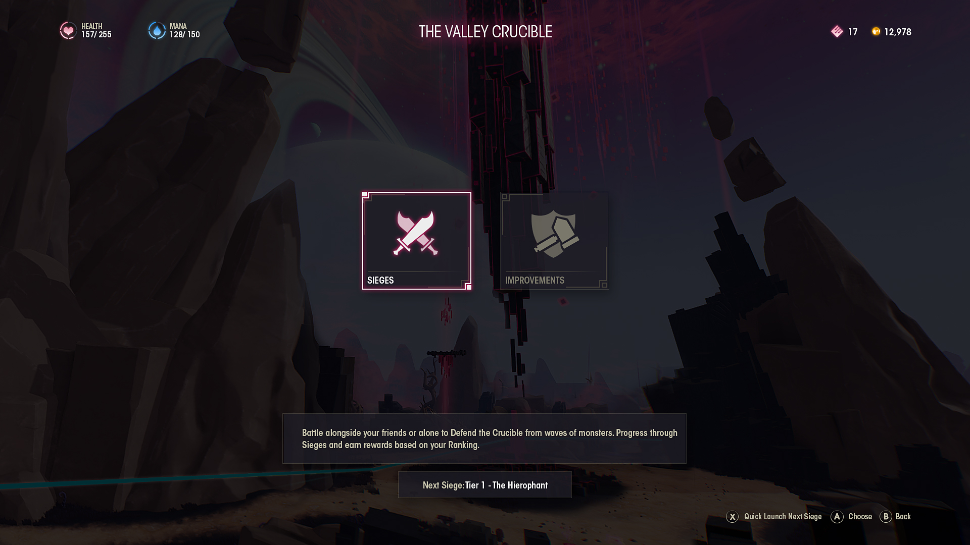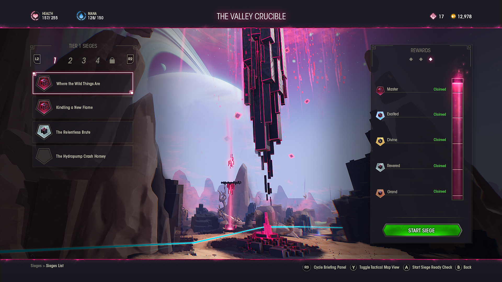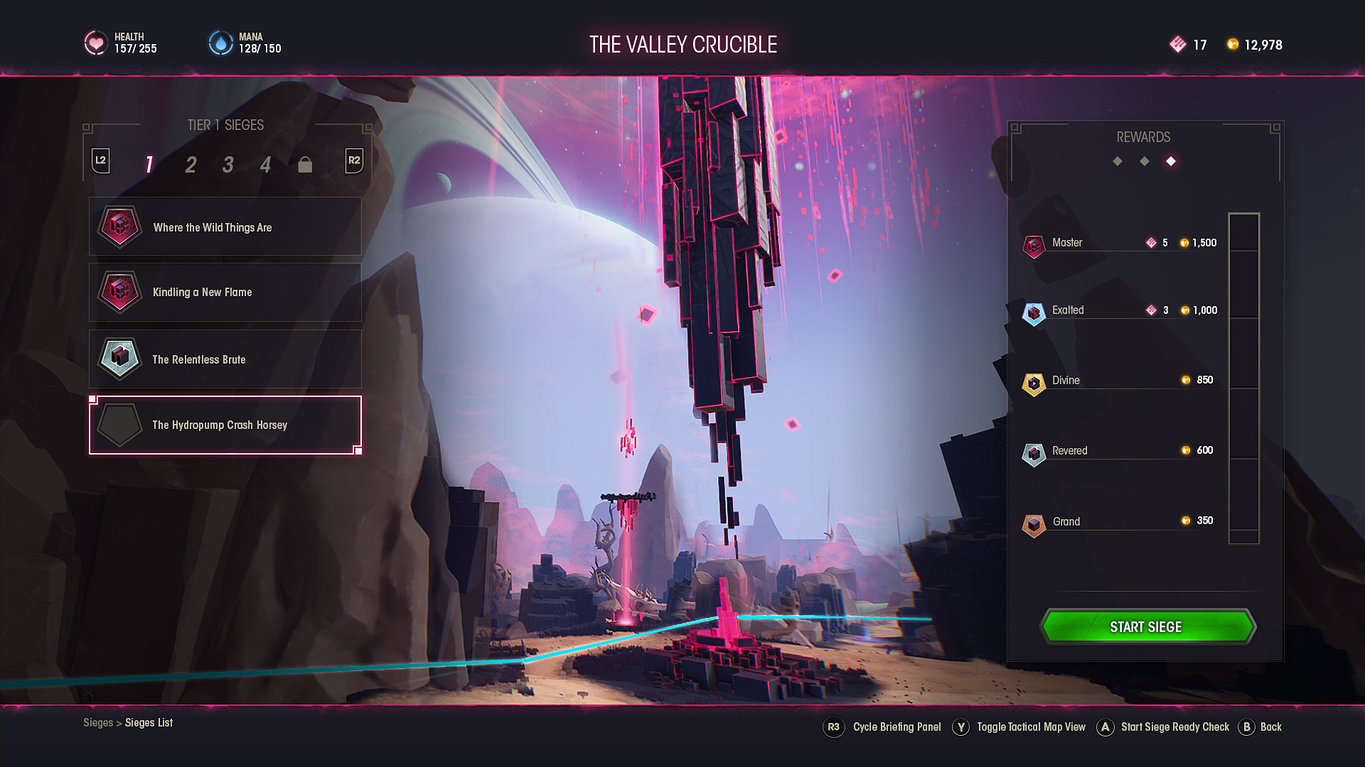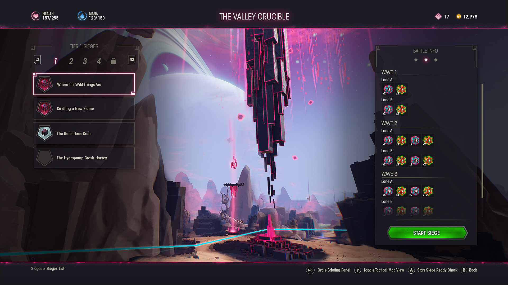 The basic Siege Mode UI was a re-adaptation (above) of the previous that was allowing only a prompt based menu. Now we had an overall menu. Then once selected, we entered a second depth layer that specified the waves and tiers of that difficulty.