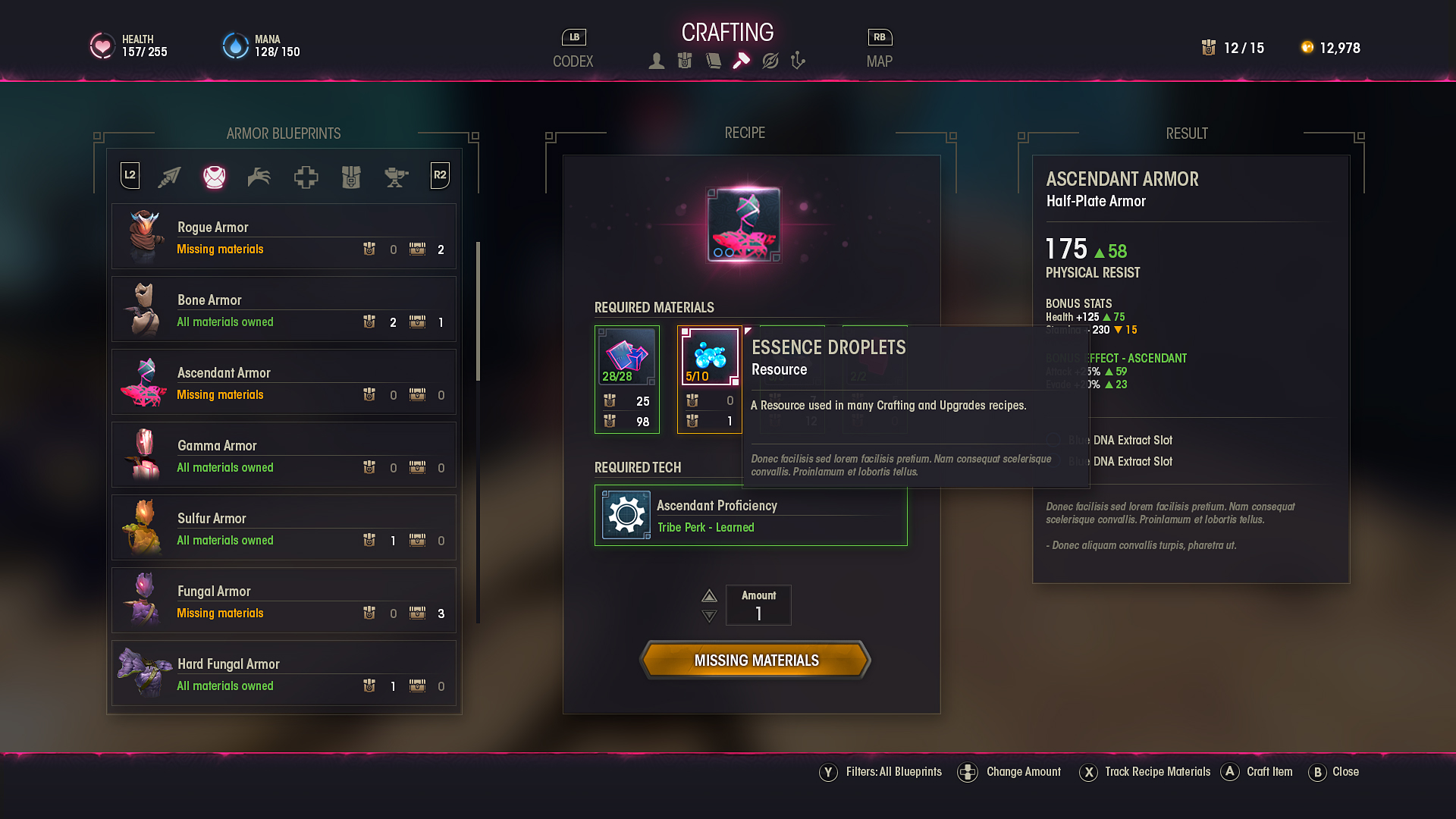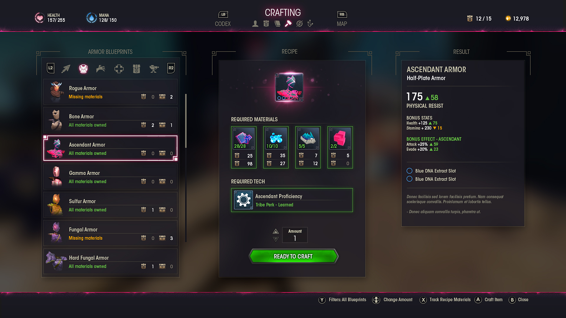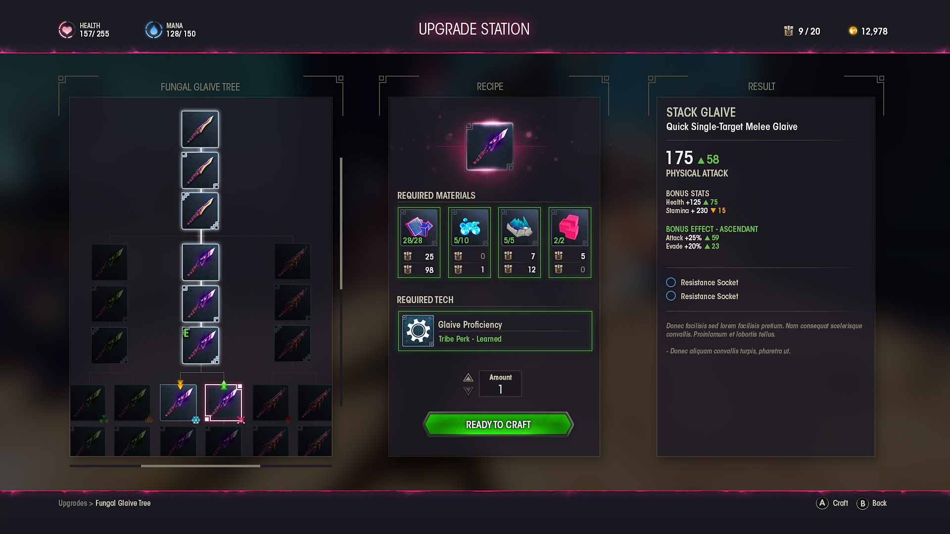 Crafting gained a lot of space contrary to the prompted UI interface. Items and equipment with materials could have more space and it allowed to divide the requirements and payments from buttons.