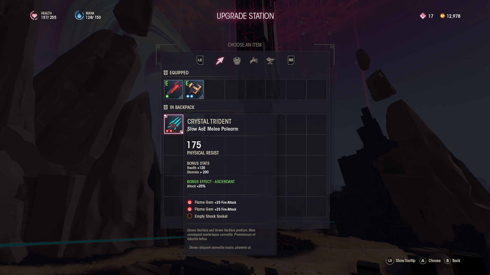 Lastly, the upgrade stations were finally designed and allowed upgrade trees for weapons you owned as well as giving them additional sockets and socketing them.