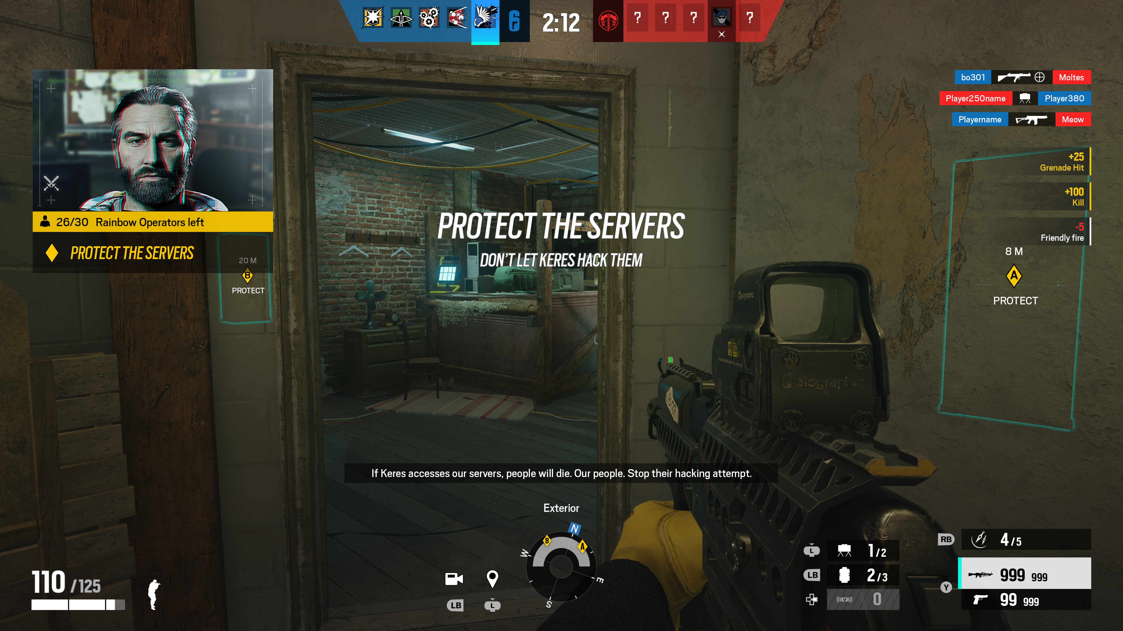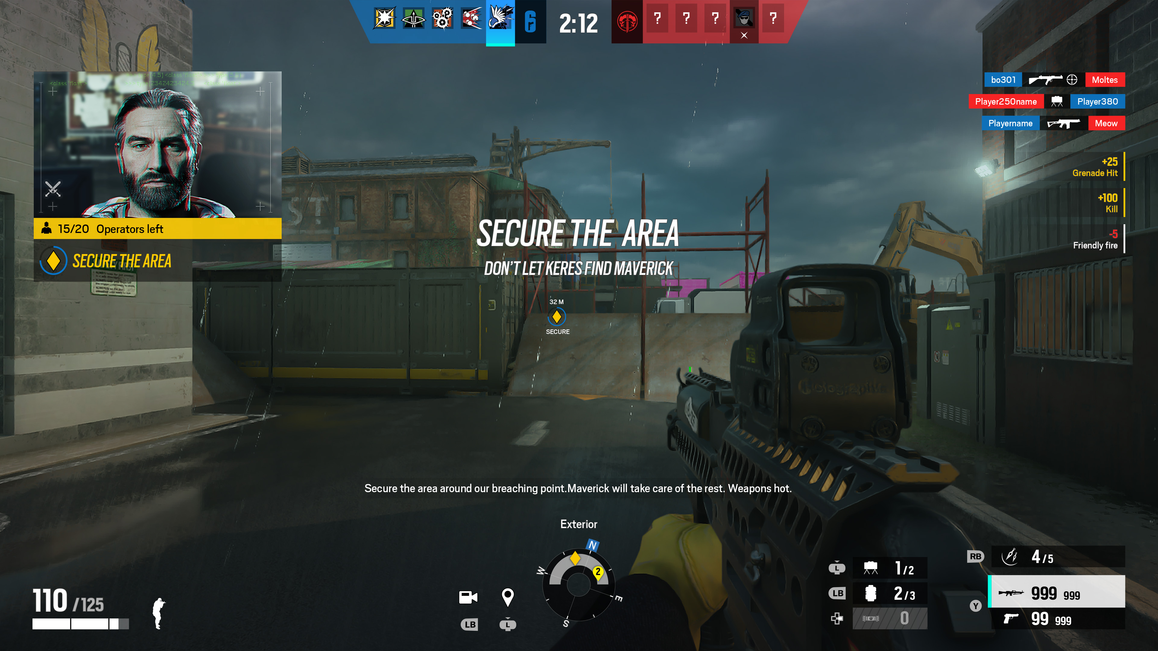 For the action phase, I had to create a HUD for each steps of the KERES or Rainbow Six teams. Because of the multi-layered objectives, we had to develop a tracker system that had been made for the onboarding into our mode.