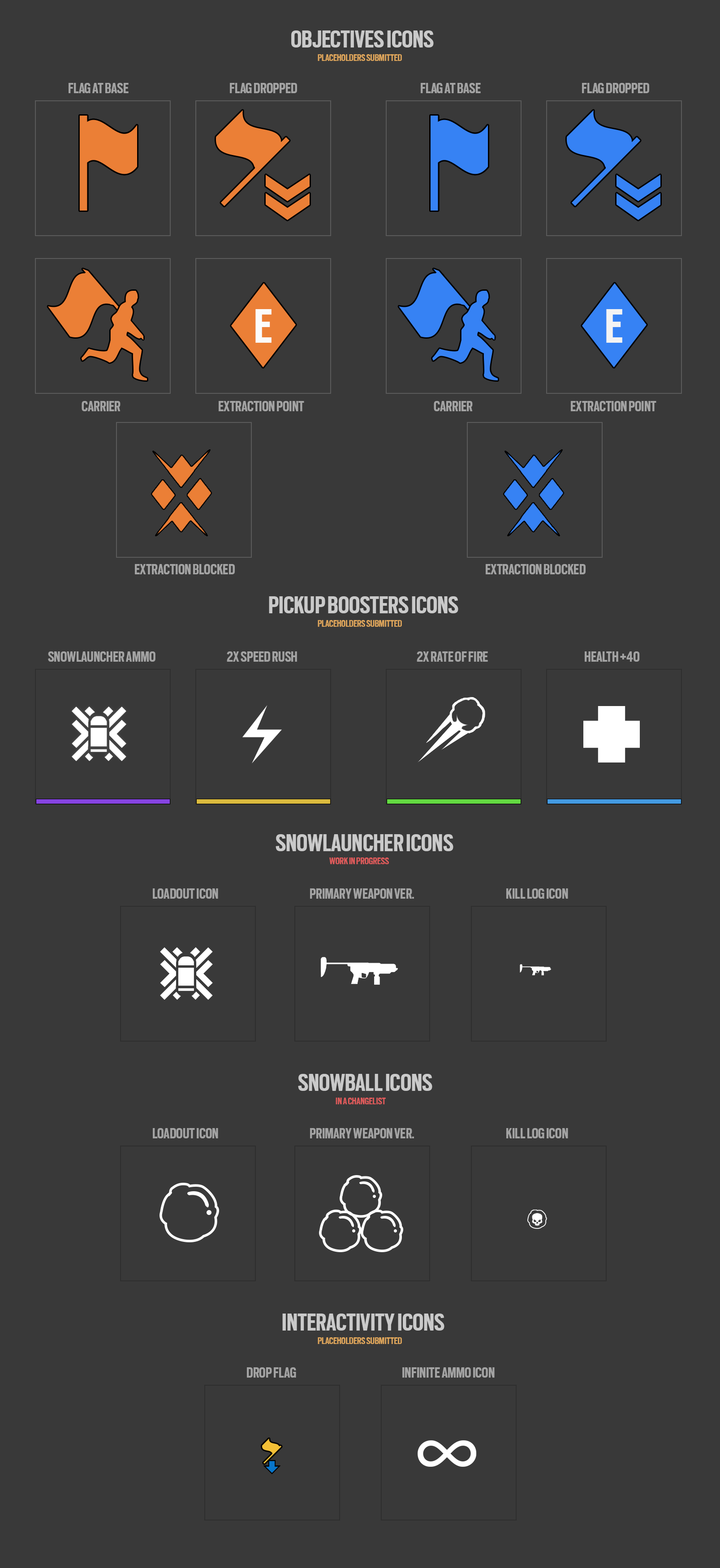 We added a Speed, Health, Ammo and Rate of Fire boosters. I created also all types of Capture the Flag iconography and systems tied to the main game mode.