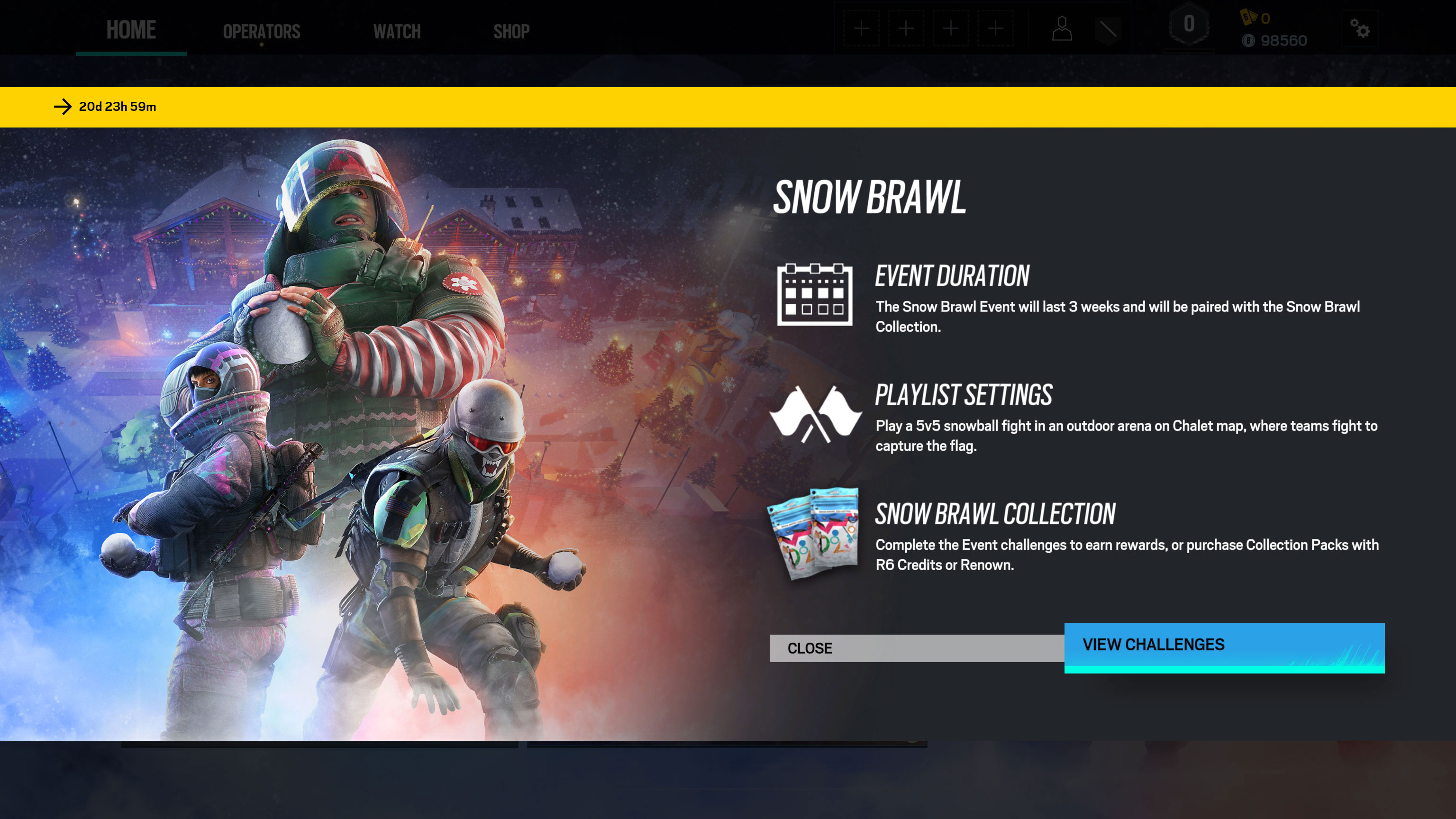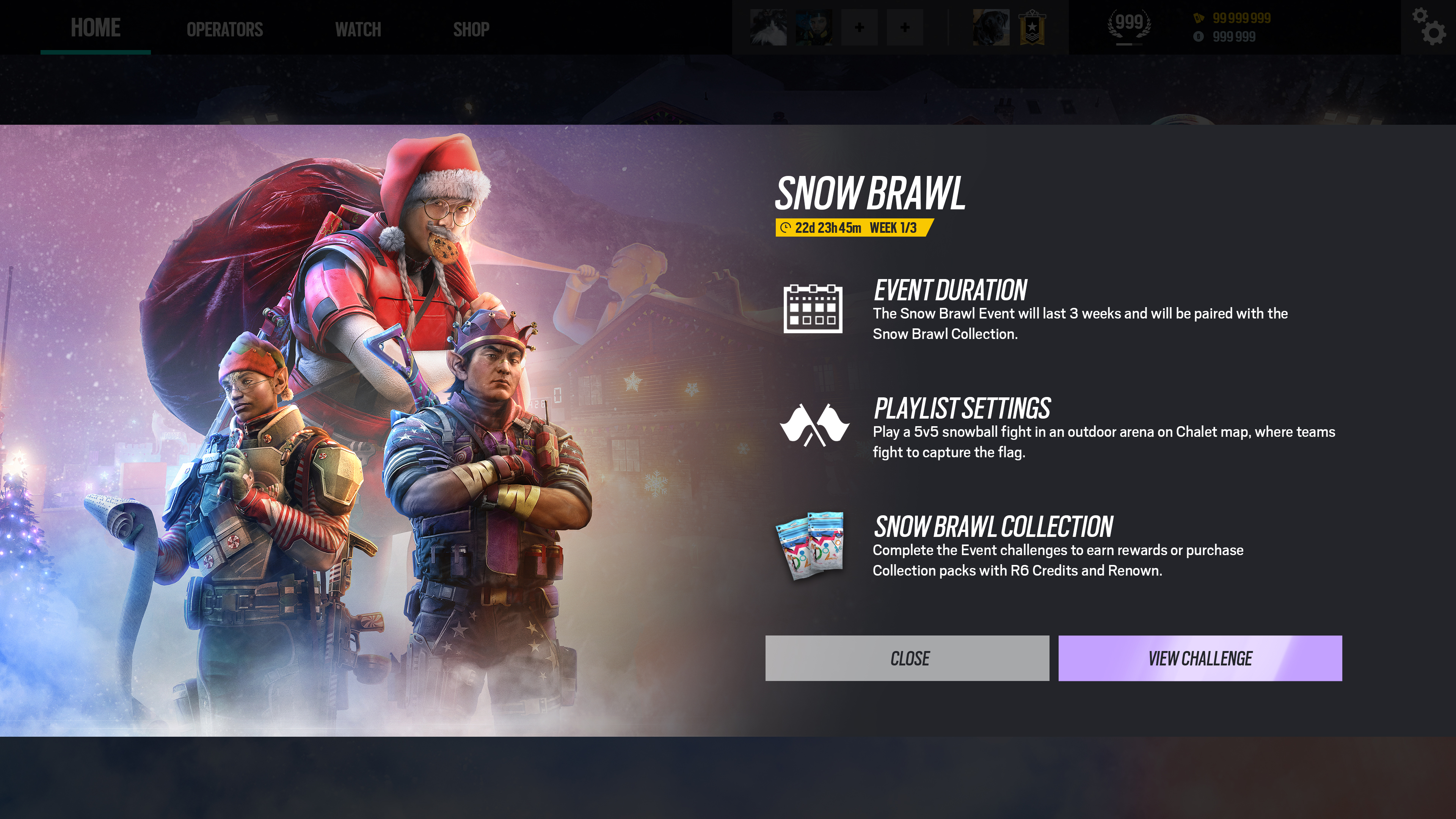 Rainbow Six: Siege Snow Brawl event was the very first dedicated Christmas winter event developed for Rainbow Six: Siege.