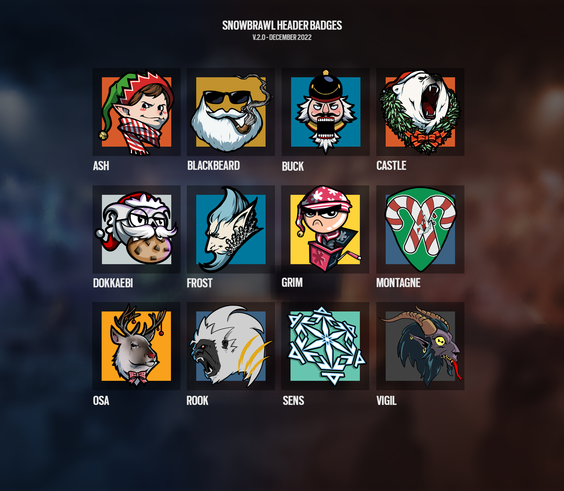 Operator Badges were introduced during the Snow Brawl 2021 event and became a reccuring artistic task for every event that followed afterwards. The badges for Snow Brawl were made based on: "what would be this skin if it was a Sports Team"?